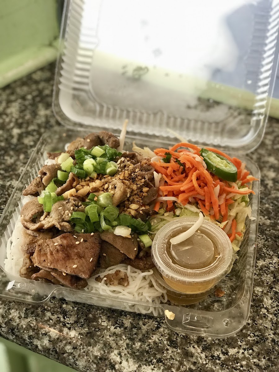 If you're looking for a sandwich that embodies Vietnamese culinary tradition, their Banh Mi offerings are sure to impress. The Crispy Lemongrass Fish Banh Mi ($11.50) features wild-caught fish packed in a toasted French roll, complemented by the tangy crunch of pickled carrots and daikon. Pro tip: Enhance your experience by adding Little V's “Peter Special” sauce and a fried egg for an extra kick of deliciousness. Another highlight is the Lemongrass Beef Banh Mi, a crowd favorite that is equally as tasty.
